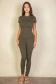 Elevate your everyday look with the Short Sleeve Round Neck T-Shirt in Olive, designed for comfort, style, and versatility. Made from a skin-friendly fabric blend, this t-shirt offers a soft and breathable feel that's perfect for all-day wear. The fitted design creates a slimming silhouette, making you look and feel your best. With a classic round neckline and short sleeves, it's an easy piece to dress up or down. Whether for casual outings, school, or daily wear, this t-shirt pairs effortlessly with jeans, skirts, or shorts for a chic and laid-back look.