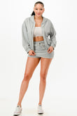 Designed for comfort and everyday ease, this zipped hooded jacket and skort set is the perfect blend of sporty and stylish. The long sleeve jacket features a full zip front, drawstring hood, and a relaxed fit for layering. Paired with a matching skort, this set offers the practicality of built-in shorts with the clean look of a skirt. Crafted from a soft, stretchy fabric, it moves effortlessly with you. Available in five essential colors, it’s a versatile go-to for casual outings, errands, or off-duty days.