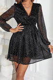 Glitter Surplice Long Sleeve Mini Dress