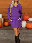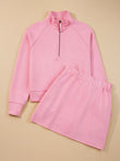 Half Zip Long Sleeve Top and Mini Skirt 2pcs Outfit