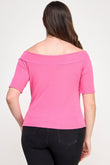 Chic and sophisticated, this plus size off-the-shoulder twist knot top is designed to highlight your shape with effortless elegance. Made from a soft, heavy slinky knit rib fabric, it offers both structure and stretch for a comfortable, flattering fit. The off-the-shoulder neckline adds a touch of allure, while the center front twist knot detail creates visual interest and definition at the bust. Half sleeves provide just the right amount of coverage, making this top ideal for day-to-night wear. Pair it with jeans, skirts, or tailored pants for a sleek, polished look.