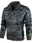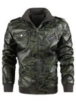 Men's Full Size Zip Up Camouflage Faux Leather Jacket Plus Size