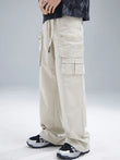 Men's Multi-Pocket Cargo Wide Leg Pants with Drawstring Waist