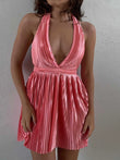 Pleated Halter Neck Mini Dress