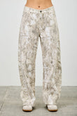 Make a bold statement with these high rise low curve barrel jeans, featuring an eye-catching printed design and a contemporary silhouette. The unique barrel leg adds volume and shape while the high-rise waist offers a flattering, structured fit. Crafted from stretch-enhanced cotton, these jeans provide both comfort and flexibility. Finished with classic five-pocket styling and a zip fly, they combine everyday function with standout style. Pair them with a fitted top or cropped jacket for a fresh, fashion-forward look.