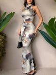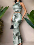Tie-Dye Halter Top and Mermaid Skirt Set