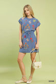 Umgee Embroidered Floral Mini Dress with Waist Tie