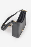 This vegan shoulder bag delivers clean lines with bold metal buckle detailing. Designed with a structured silhouette, it offers a refined and modern look. The buckle accent adds visual interest and polished contrast. Comfortable shoulder straps allow for easy daily wear. Compact sizing keeps essentials secure and organized. Durable materials provide long-lasting structure. This bag is a versatile accessory designed for everyday sophistication.