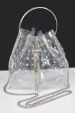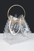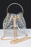 Faux Pearl Studded Bucket Bag W/metal Handle