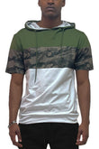 Camo And Solid Design Block Hooded Shirt