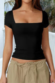 Square Neck Fit Elastic Short Sleeves Shirt