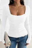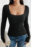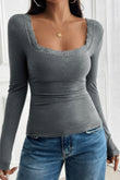 Square Neck Lace Trim Patchwork Slim Fit Shirt