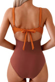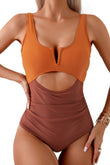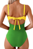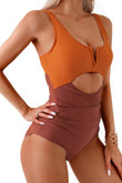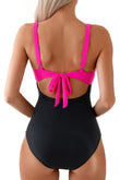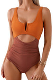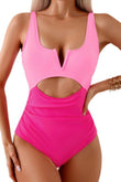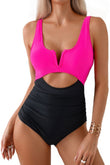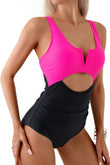 Features: One Piece Cut Out Fit Color Block Swimsuit