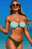 Solid Color Metal Decor Strapless Bikini Swimsuit