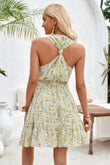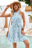 Floral Halter Cross Belt Ruffle Midi Dress