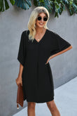Features: V Neck, Short Sleeve, Solid, Loose Fit, Casual, Short Dress